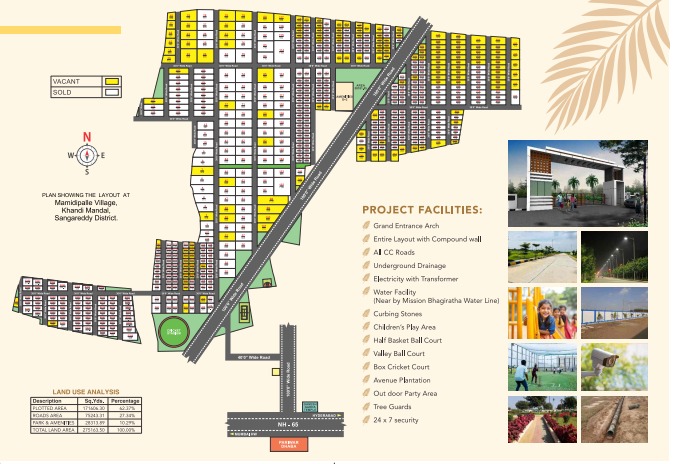 Palm City is located at Shadnagar and prices start from Rs. 8,000/- per sq yard.